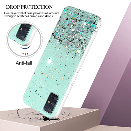 Compatibile con Cover Samsung A51 Trasparente Glitter Bling Bling Custodia Samsung Galaxy A51 Cover Silicone Sottile Case Morbida Rosa (Samsung A51, Verde)