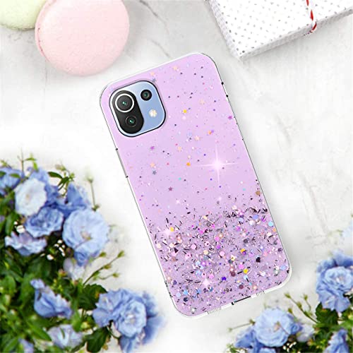 Compatibile con Cover Xiaomi Mi 11 Lite, Custodia Xiaomi 11 Lite 5G NE Trasparente, Mi 11 Lite 5G Silicone Glitte Protettiva Slim Antiurto Case Rosa Accessori (viola, Xiaomi Mi 11 Lite)