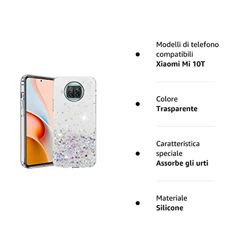 Compatibile con Cover Xiaomi Mi 10T Lite 5g Glitter, Xiaomi Mi 10T Lite Cover Trasparente, Custodia Xiaomi Mi 10T Lite Silicone Antiurto (Trasparente, Xiaomi Mi 10T Lite 5g)