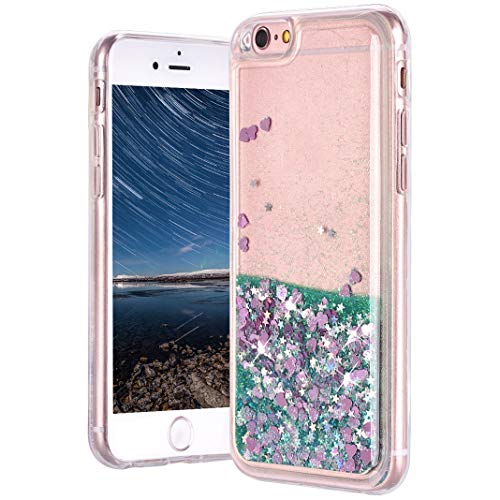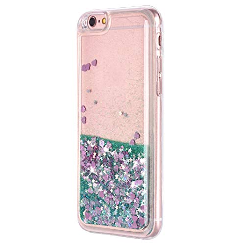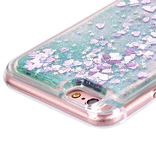 Compatibile con Custodia iPhone 6 Plus Brillantini Silicone, 3D Glitter Liquido TPU Cover Fluttuante Brillantini Cristallo Quicksand Bling Custodie Compatibile con Apple iPhone 6S Plus, Verde Chiaro