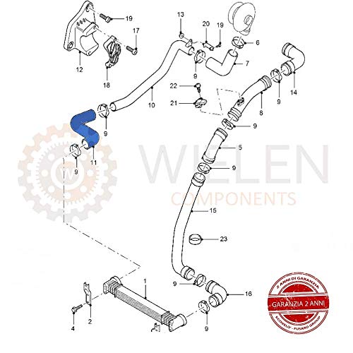 Installazione: tra il turbocompressore e l'intercooler, sul lato destro del motore (lato passeggero) (guarda l'immagine di montaggio)