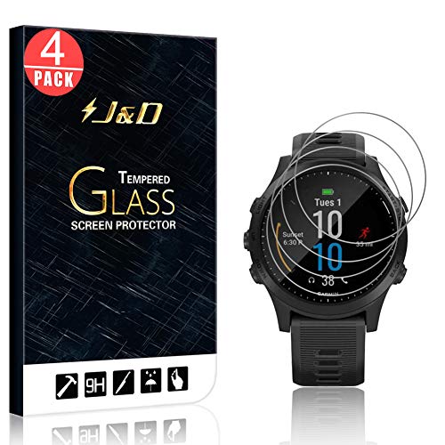 J&D Compatibile per Garmin Forerunner 945 Tri-Bundle Pellicola Protettiva, 4-Pack [Vetro Temperato] [Piena Copertura] HD Chiaro Balistico Vetro Protezione Schermo per Garmin Forerunner 945 Tri-Bundle