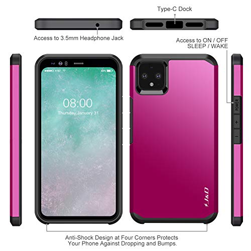 J&D Compatibile per Google Pixel 4 XL Cover, [Protezione Robusta] [Armatura Sottile] Ibrida Antiurta Protettiva Rigido Custodia per Pixel 4 XL - [Non per Google Pixel 4] - Rosa Fucsia
