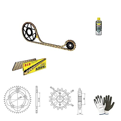 DESCRIZIONE E CARATTERISTICHE PRODOTTO: KIT CATENA-CORONA-PIGNONE- KIT TRASMISSIONE S-AC 17-41-122 DID525VX (GeB) R comprende: - CATENA DID 525VX3 (GOLD e BLACK) - LUNGHEZZA: 122 MAGLIE CON GIUNTO A RIVETTO (ZJ) - PIGNONE P525 - Z17 (DIS.20614) - CORONA IN ACCIAIO P525 - Z41 (DIS.10613) - SPECIFICO PER LA TUA MOTO - OTTIMA QUALITA' E PRESTAZIONE
