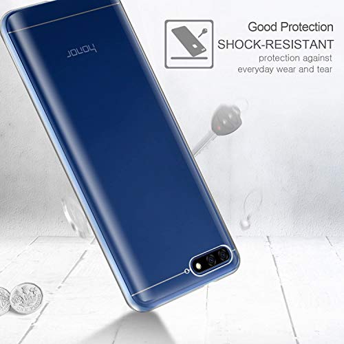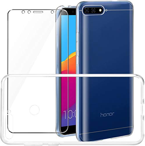 COMPATIBILE per HUAWEI Y6 (2018) schermo 5.7 ATU-L11 ATU-L21 ATU-L22 ATU-LX3 Custodia COVER case GEL silicone TPU morbida + PELLICOLA vetro TEMPERATO antiurto antigraffio (Trasparente)