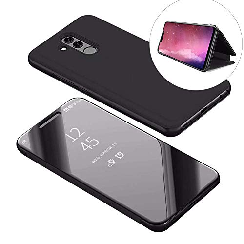 Compatibile PER HUAWEI MATE 20 LITE (6.3) SNE-LX1 SNE-L21 SNE-AL00 COVER specchio riflettente LIBRO MIRROR STAND case SLIM Clear View copertura totale fronte/retro 360° Full Body (Nero)