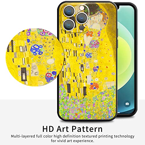 Compatibile con iPhone 12 Pro Custodia Premium Silicone Progettata Cover Giallo Fiore Ragazze Antiscivolo Impermeabile Ultrasottile Vieni con una protezione per lo schermo (Gustav Klimt-Il Bacio)