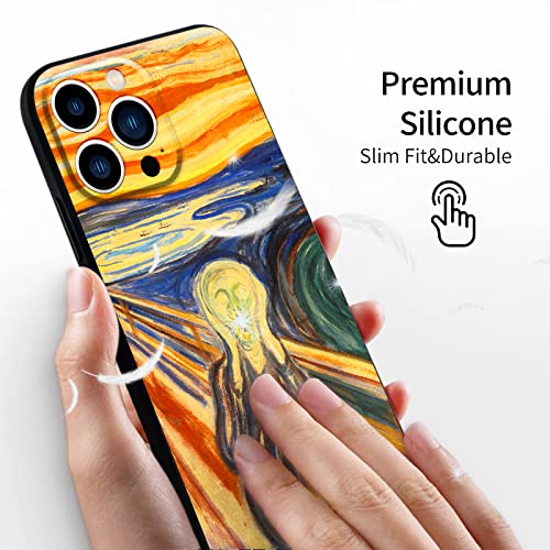 Compatibile con iPhone 13 Pro Max Custodia Premium Silicone Progettata Cover Marrone Astratto Impermeabile Ultrasottile Protettiva Morbido Vieni con una protezione per lo schermo (Edvard Munch-L'urlo)