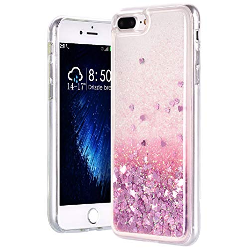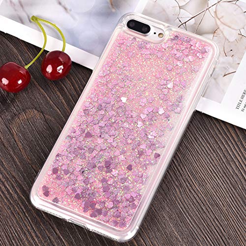 Compatibile con iPhone 7 Plus Liquido Custodia Rosa, Brillantini Trasparente Silicone Gel Bling Liquido Sabbie Mobili Bumper TPU Quicksand Glitter Case Protettivo Cover Compatibile con iPhone 8 Plus