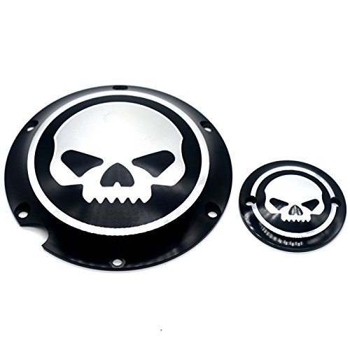 Compatibile per Motocicletta Nero Cranio Accessori Cromo Motore Derby Timer Cover per Harley Sportster Iron XL 883 1200 04-14(Pacchetto di 2 pezzi)