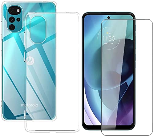 Compatibile con MOTOROLA MOTO G22 XT2831-3 / E32 / E32S Custodia Cover flessibile Case Soft Slim Gel Silicone TPU + Pellicola Vetro TEMPERATO 9H (Trasparente)