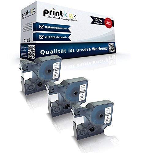 3x Compatibile Nastri Scrittura per Dymo D1 45020 Labelmanager 200 Labelmanager 210 Doppie Labelmanager 220 P Labelmanager 260 P S0720600 12mmx7m Bianco su Trasparente - Ufficio Stampa Serie