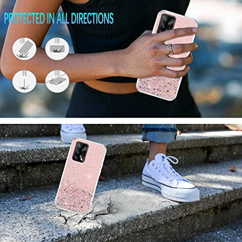 Compatibile con Oppo A74 4G Custodia, Oppo A74 4G Custodia Cover Glitter Silicone Trasparente Cellulare Case Nero Rosa Custodia Antiscivolo Protezione (Rosa, Oppo A74 4G)