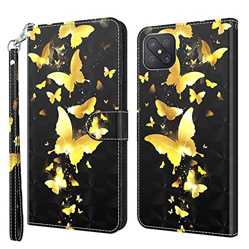 Compatibile con Oppo Reno 4Z 5G / A92S Case Cover Flip Case Cover modello 3D con funzione di supporto Custodie per cellulari a portafoglio per Oppo Reno 4Z 5G / A92S YX: Gold Butterfly