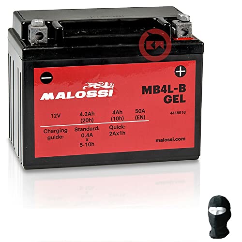 DESCRIZIONE E CARATTERISTICHE PRODOTTO: BATTERIA MALOSSI MB4L-B IN GEL PRECARICATA SIGILLATA -BATTERIA PRONTA PER L'UTILIZZO, COMPLETA, BISOGNA SOLO MONTARLA, GIA' CARICA!! -Sigillata/ermetica, -precaricata (attivata in fabbrica - Factory Activated) - A tenuta stagna -12 Volt 4,2 Ah ampere -NEL TITOLO INDICHIAMO IL MODELLO SPECIFICO PER LA TUA MOTO, SCOOTER O QUAD!!