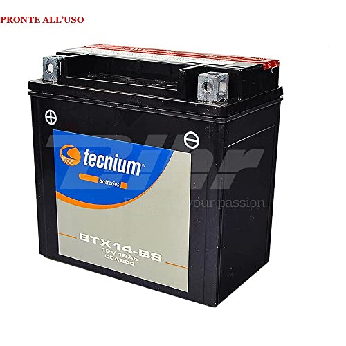 COMPATIBILE CON PIAGGIO 400 Beverly Tourer 2008 BATTERIA GIA' PRONTA ALL'USO TECNIUM YTX14-BS 12V 12AH BATTERIE 12 AMPERE SPECIFICA PER MOTO SCOOTER 150X87X145
