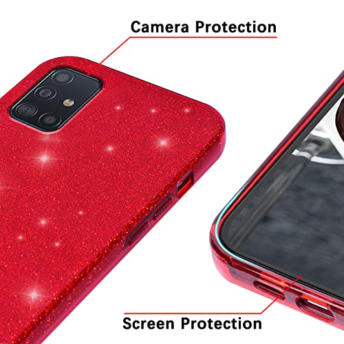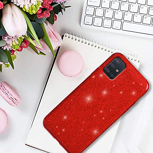 Compatibile con Samsung A71 Custodia Glitter Bling Bling Bling Custodia Samsung A71 Trasparente Silicone Sottile Protezione Samsung A71 Cover 3 in 1 Case Nero (Samsung A71, Rosso)