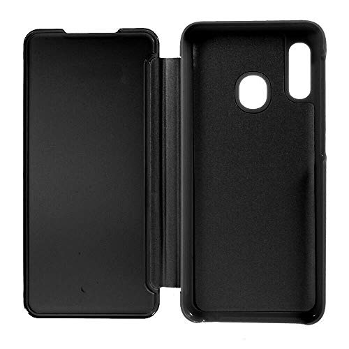 Compatibile per Samsung Galaxy A20E (5.8) SM-A202F sm-a202f/ds Custodia Cover Specchio Riflettente Libro Stand Case Clear View Copertura Totale Protezione Touch Schermo (Nero)