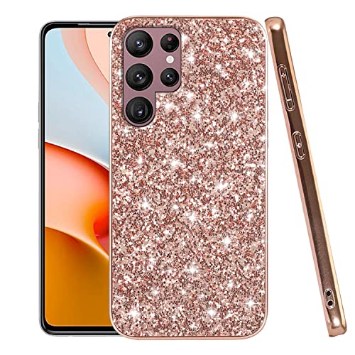 Compatibile con Samsung Galaxy S22 Ultra Custodia Glitter Custodia Samsung S22 Ultra 5G Nero, Protezione Samsung S22 Ultra Cover Silicone Case Sottile (Samsung S22 Ultra 5G, Oro Rosa)