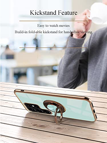 Compatibile con Samsung S22 Ultra 5g con anello supporto magnetico, cover Samsung S22 ultra silicone sottile placcato bordi in oro con 360° rotante anello (verde)