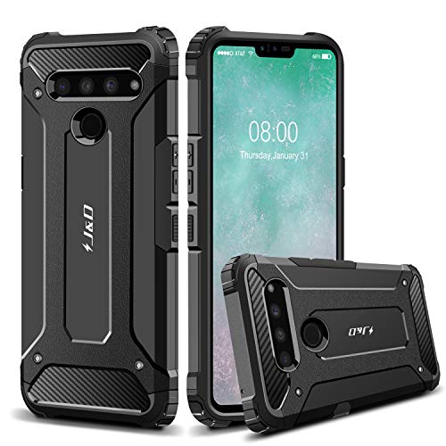 J&D Compatibile per LG V50 ThinQ 5G Cover, [Armatura Sottile] [Doppio Strato] Ibrida Antiurta Protettiva Rigido Custodia per LG V50 ThinQ 5G - Nero