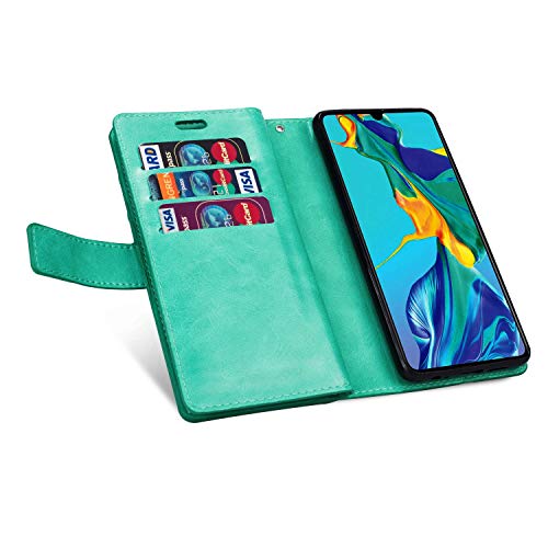 Compatibile con Xiaomi Mi CC9/A3 Lite Custodia Libro per Telefono Portafoglio Custodia in Pelle PU con Nove Slot per Schede Cerniera Cover Libretto Protettiva Antiurto Case a con Magnetica,Verde