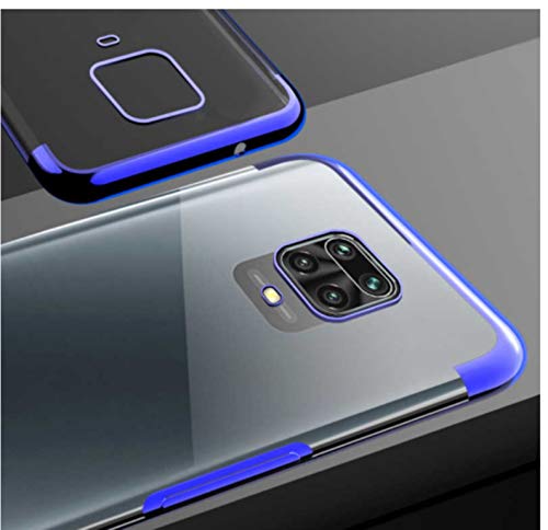 Compatibile con XIAOMI Note 9S / Note 9 PRO/Max Custodia Cover Electroplating Cornice Alluminio Gel Silicone TPU Morbida Protezione Soft Slim Case Fondo Trasparente Blu