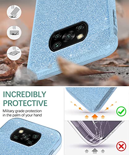 Compatibile con Xiaomi Poco X3 Pro Cover Silicone, Cover Poco X3 Pro Glitter Rosa, Custodia Poco X3 Pro Case Glitter 3 in 1 Cover (Blu, Xiaomi Poco X3 Pro)