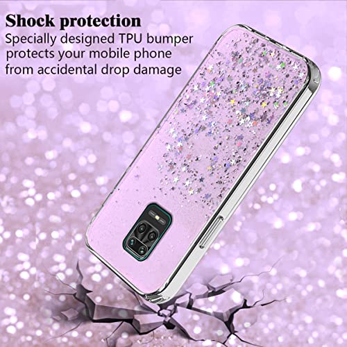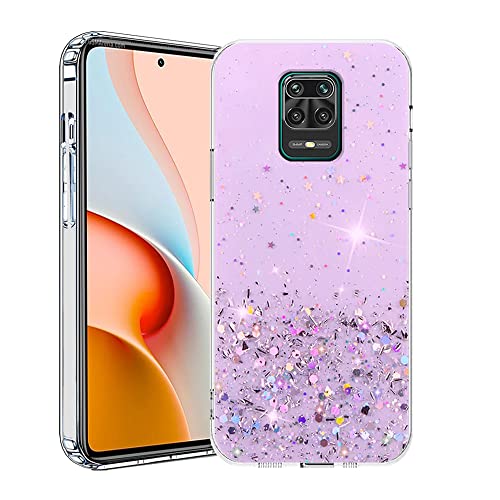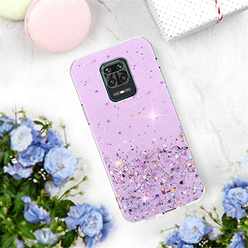 Compatibile con Xiaomi Redmi Note 9 Pro, custodia glitterata, custodia Redmi Note 9 Pro, trasparente, custodia protettiva Xiaomi Redmi Note 9 Pro, in silicone sottile (Xiaomi Redmi Note 9 Pro, viola)