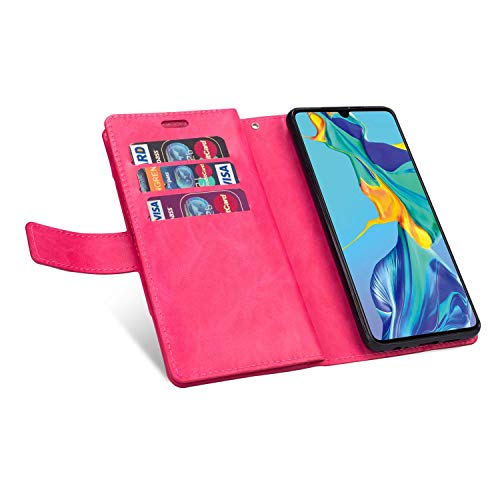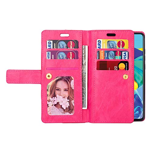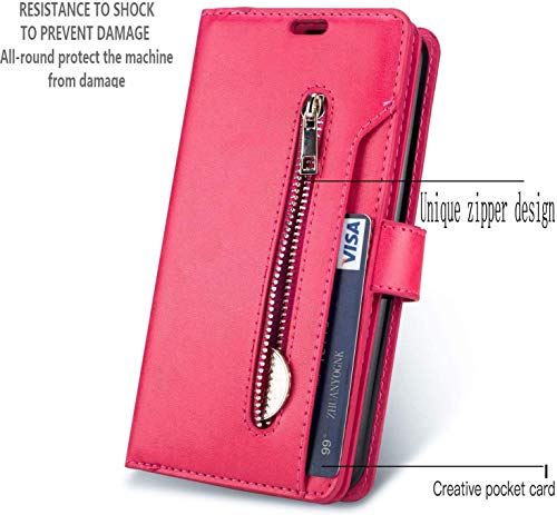 Compatibile con Xiaomi Redmi Note 8 Custodia Libro per Telefono Portafoglio Custodia in Pelle PU con Nove Slot per Schede Cerniera Cover Libretto Protettiva Antiurto Case a con Magnetica,Rosa Rossa