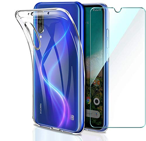 Compatibile per XIAOMI MI A3 schermo 6.08 CC9E Custodia COVER CASE ULTRA soft slim GEL silicone TPU morbida + PELLICOLA vetro TEMPERATO antigraffio ANTIURTO (Trasparente)