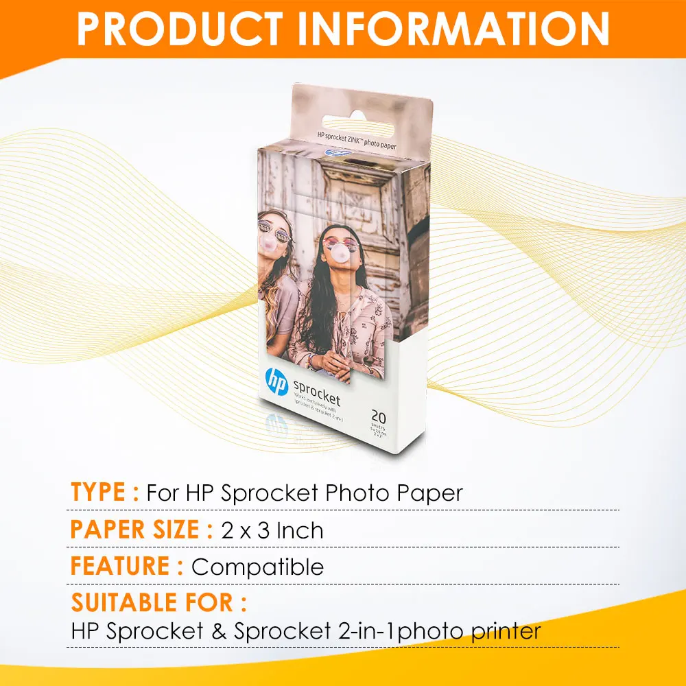 2x3" Compatible for HP Sprocket & Sprocket 2-in-1 for Mini Photographic Paper Pocket Photo Printer Zink Paste Photo Paper