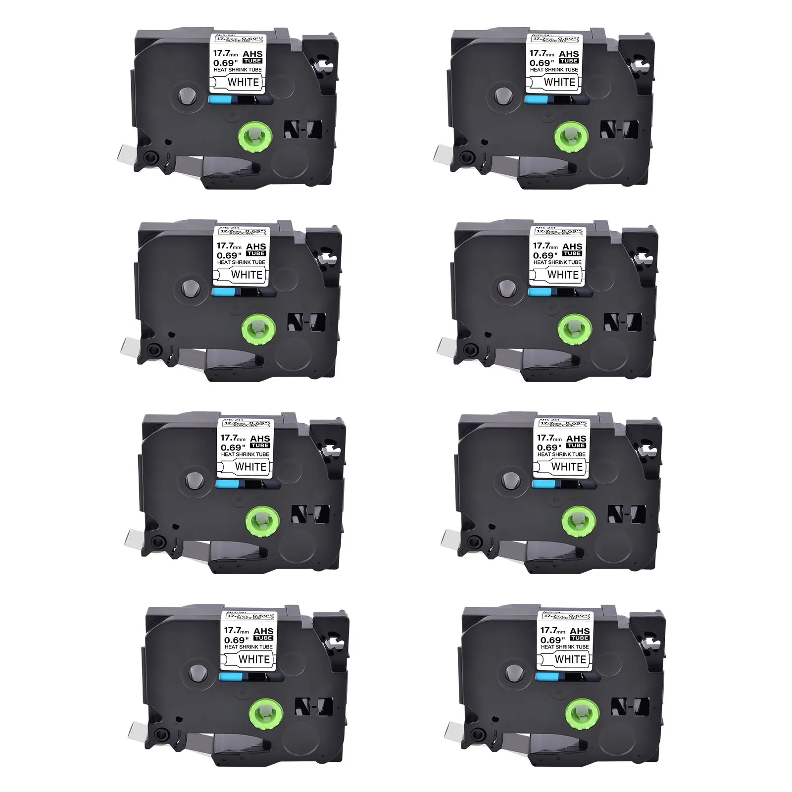 8PK Compatible with Brother P-Touch HSe-241 Heat Shrink Tube Replacement Black on White 17.7 mm x 1.5 m Tape Cassette Label