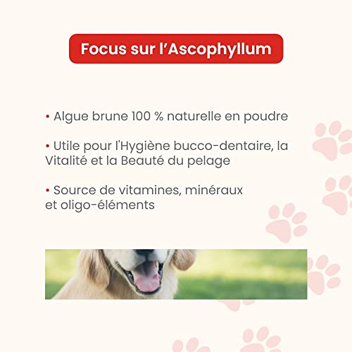 Compavet Ascophyllum nodosum in polvere - per cani e gatti - Igiene orco-Dentario - Riduce la placca Dentaria e le tartre, Evita la Malva haleina - Vasetto 100 g - Sviluppato in Francia