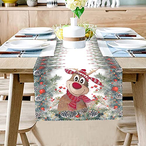 ComPDCVD Runner da Tavola di Natale 140 x 33cm Runner per la Tavola di Natale Rettangolari con Motivo Renna Tovaglia per Vacanze di Natale in Lino Decorazione per la Tavola di Natale
