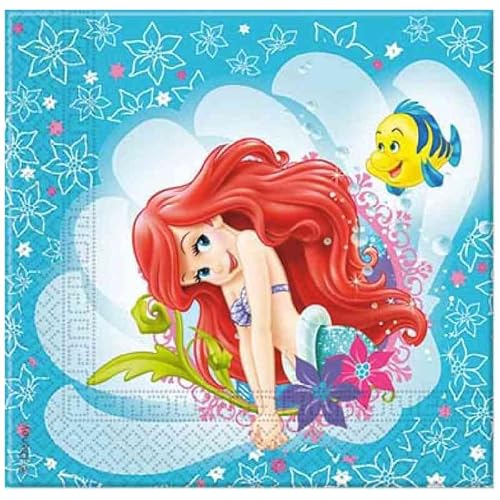 Kit Compleanno di Ariel per 24 persone - Addobbi Decorazioni da Tavola Mermaid La Sirenetta Party Festa per Bambina (24 piatti di carta, 24 bicchieri di plastica, 40 Tovaglioli di carta)