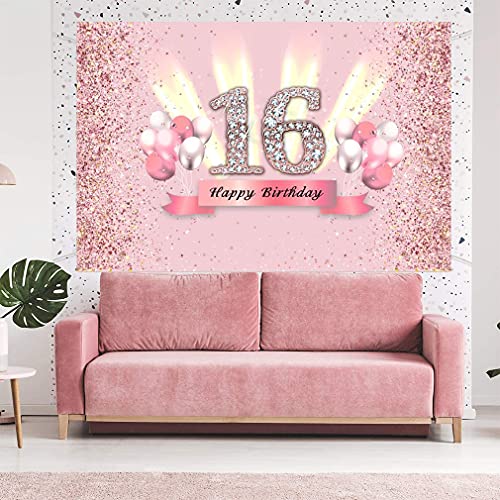 16° compleanno, decorazione per festa di compleanno, poster per il 16° anniversario di fondo, banner per il 16° compleanno glitter rosa
