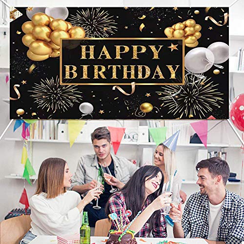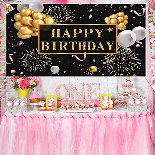 Compleanno Decorazione di Festa, Sfondo per Fotografia di Compleanno, Compleanno Banner Sfondo, Composto da Nero, Oro e Bianco, Utilizzato per Decorare Feste di Compleanno, 70,87 * 43,31 Pollici