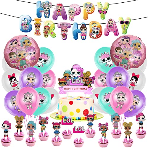 【Set di decorazioni】 Riceverai 1 striscione di compleanno per bambola a sorpresa, 24 palloncini in lattice, 2 palloncini in alluminio, 1 grande cake topper, 24 piccoli cake topper e 1 rotolo di nastro. Gli accessori squisiti possono migliorare l'atmosfera felice della scena.