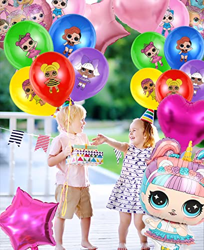 33 PCS Compleanno Decorazioni Surprise Doll,Surprise Doll Compleanno Palloncini Deco,Surprise Doll Palloncini in Lattice,Bambini Compleanno Palloncini,Surprise Doll Theme palloncini alluminio