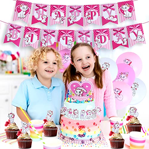 34 Pcs Compleanno Set Marie Cat, Marie Cat Palloncini Decorazioni, Marie Cat Balloon, Marie Cat Topper, Striscione Buon Compleanno, Kit Party Marie Cat Aristogatti, Palloncini Compleanno Bambina