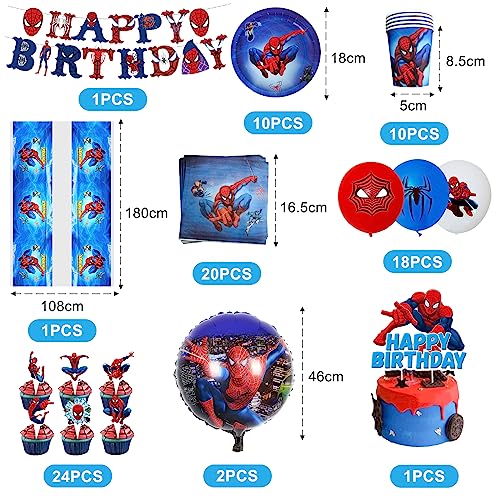 Kit Compleanno Spiderman, 87Pcs Spiderman Feste Stoviglie, Spiderman Party Décorations, Decorazioni Compleanno Spiderman, Palloncini Spiderman, Piatto, Tazza, Tovaglioli, Tovaglia, Striscioni