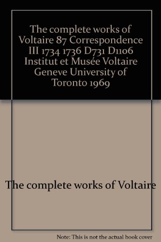 The complete works of Voltaire 87 Correspondence III 1734 1736 D731 D1106 Institut et Musée Voltaire Geneve University of Toronto 1969