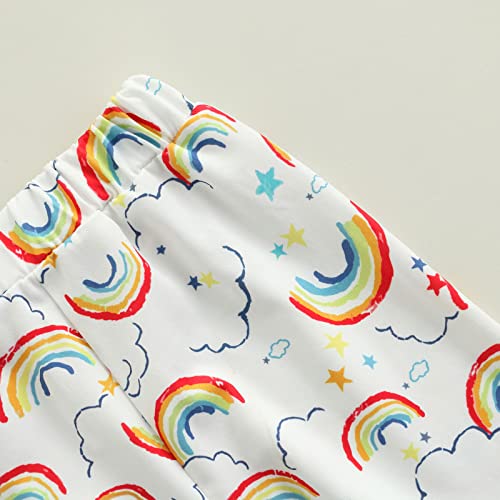 Completo Bimba 2 Pezzi Top a Maniche Lunghe + Pantaloni Svasati a Vita Alta con Stampa Floreale(Arcobaleno,9-12 Mesi)