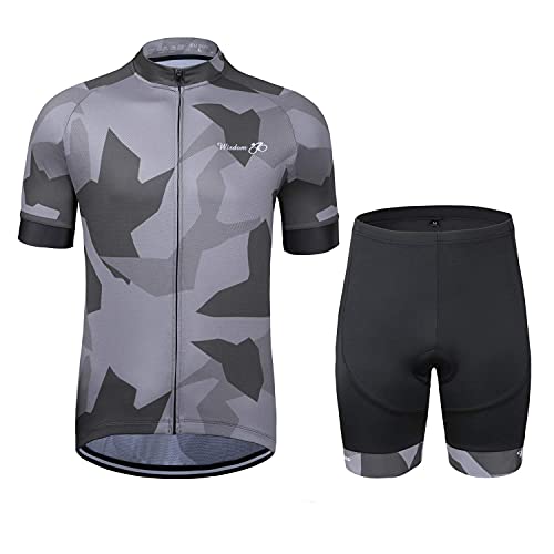Completo da ciclismo per uomo manica lunga MTB in jersey traspirante e gel 3D, pantalone con rinforzo imbottito, Camo-nero, S