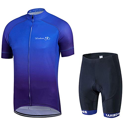 Completo da ciclismo per uomo manica lunga MTB in jersey traspirante e gel 3D, pantalone con rinforzo imbottito, Blu, M