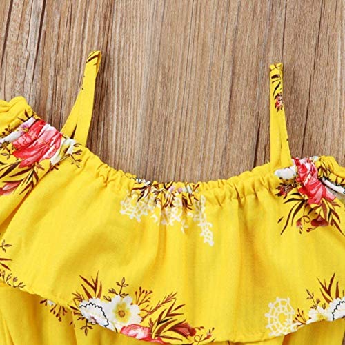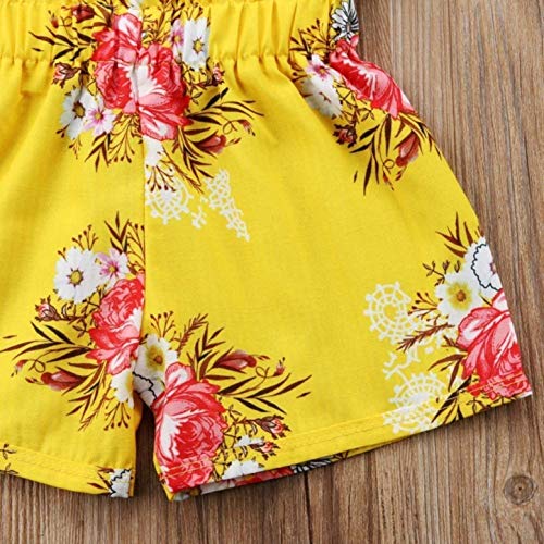 Completo Coordinato Bambina - Completino Bimba - Mare - Spiaggia - Top - Maglietta - Pantaloncini Corti - Giallo - Fiori - Floreale - Taglia 130-5 - 6 Anni - Abbigliamento Bambina