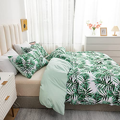 Completo Copripiumino Piazza e Mezza, Sacca Copri Piumone con Cerniera Biancheria da Letto Foglie Della Giungla Tropicale, 1 x Copripiumino 200x200 cm e 2 x Federe 50x75 cm - Verde Bianco