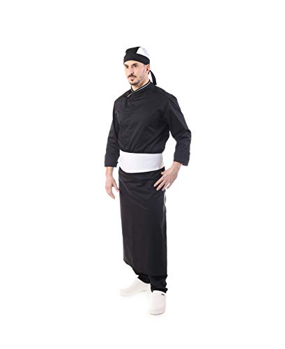Completo Cuoco Nero - Inserti Bianchi - 100% Cotone - Ricamo Gratuito - Coda di Topo Bianca - Divisa Chef Uomo - Giacca Pantalone Davantino e Bandana - per Cucina e Ristorante - Made in Italy (Large)