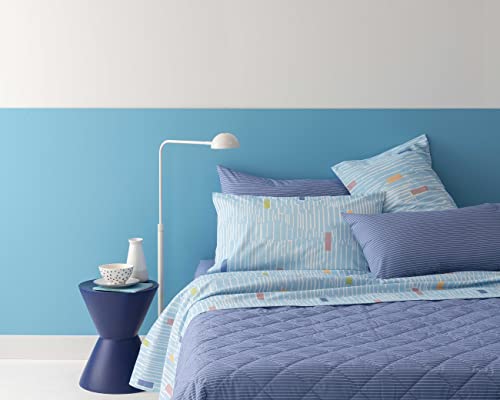 Completo Lenzuola Per letto Singolo Bassetti in puro cotone Art. Track (Azzurro)